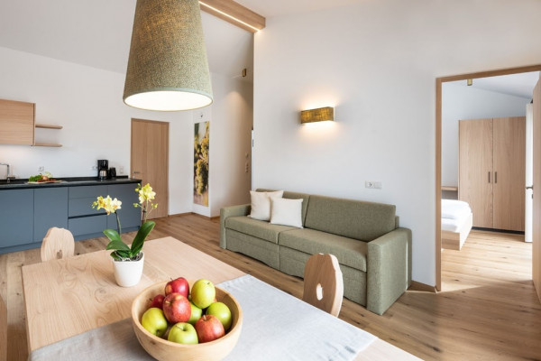 Con molto amore per i dettagli e per la natura abbiamo arredato i nostri 5 nuovi appartamenti per ferie. Ambienti luminosi e arredamenti in legno di castagno creano un`atmosfera confortevole e accogliente e faranno diventare indimenticabile il tempo del Vostro soggiorno.